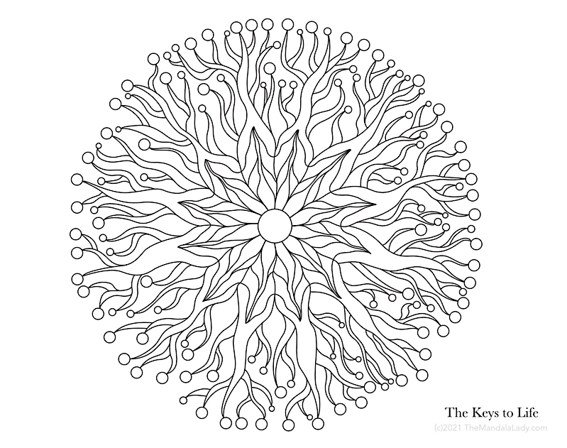 I created “The Keys to Life” mandala-to-color as a way to symbolically represent these three keys: