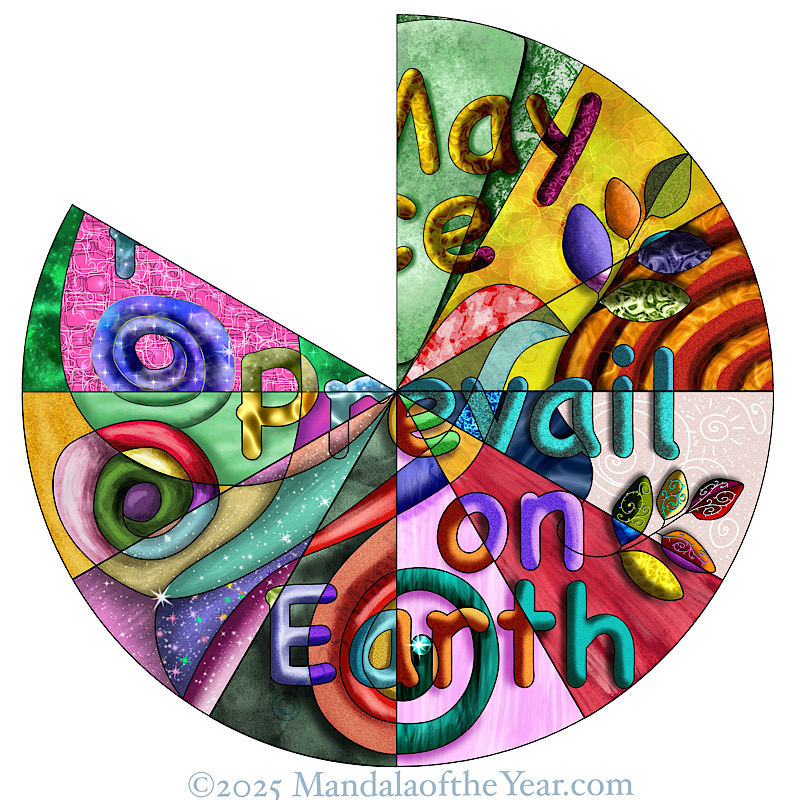 My overarching theme for 2025 is a quest for peace…mainly from within. After all, the outside world is just a reflection of our inside world. So if we want peace in the world, then we must claim it from within. With each section throughout the year, we’ll explore different aspects of peace using 12 different words that translate as peace in some way…and gradually reveal this year’s Mandala of the Year. Here’s this month’s word: